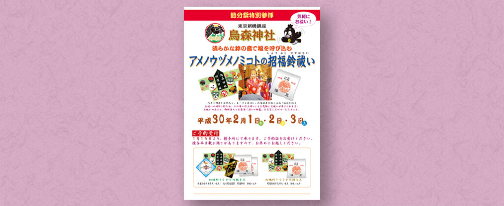 招福鈴祓いは、お待たせ時間を考慮してご予約制とさせていただきます。事前にかならずご予約証をお受けください。
