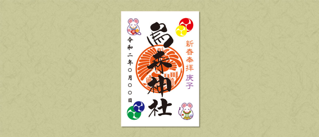 令和初の新春特別御朱印は、干支袢纏御守りとお揃いの、可愛らしい干支のねずみが入ったデザインです!