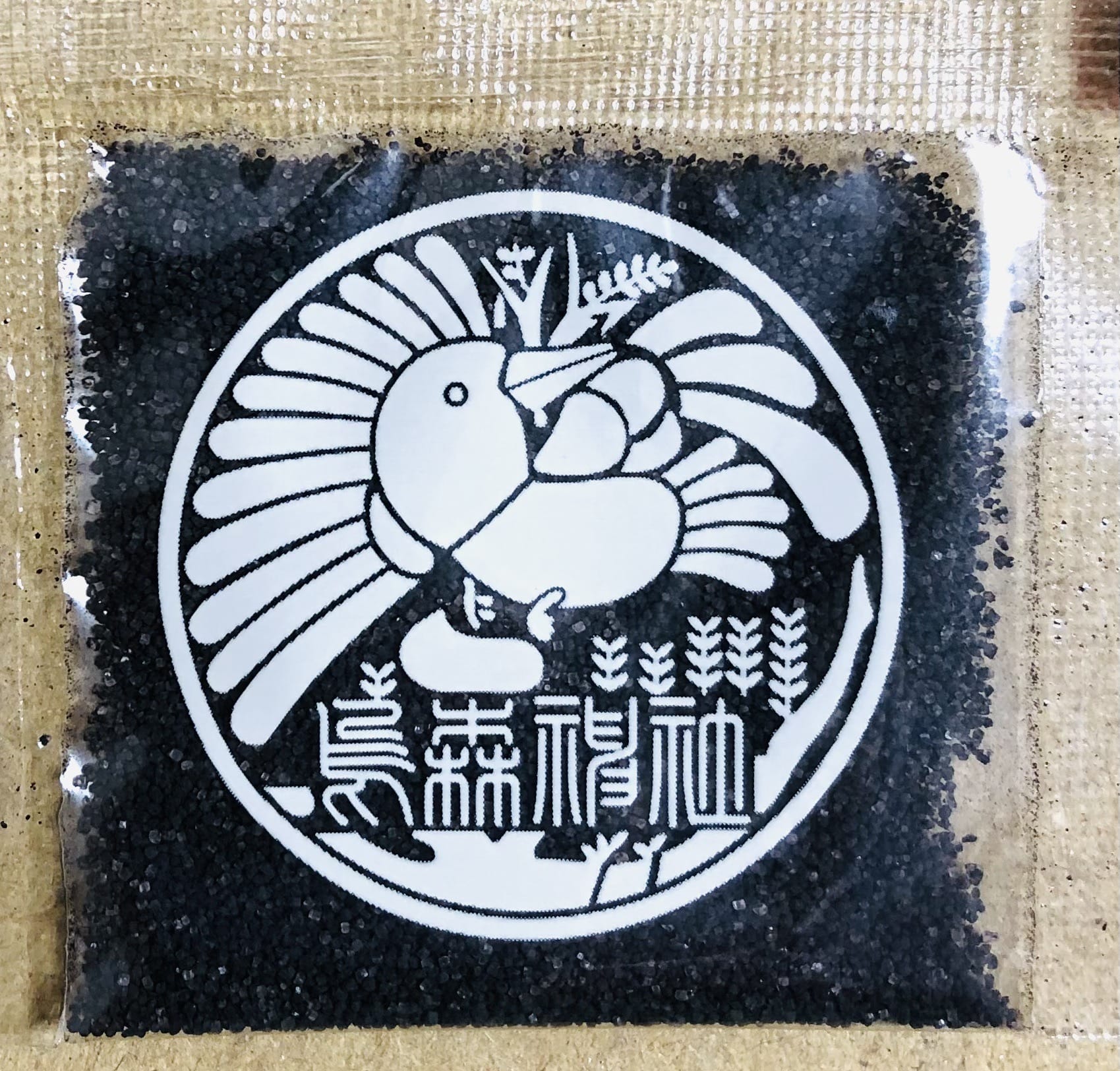 御朱印をお受けの方に、黒の「例大祭御守」と、邪気を祓うカラスの「黒塩」をお授けいたします。