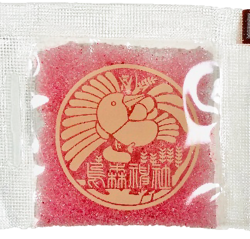 不純物が少ない瀬戸内の澄んだ海水から作られた塩を、無農薬栽培のアカフサスグリの実で発色させた、烏森神社オリジナルの無添加で味わい深いお塩です。